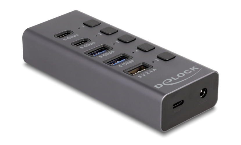 DELOCK USB hub 64248 με διακόπτες, 5x θυρών, 5Gbps, USB/USB-C σύνδεση, γκρι