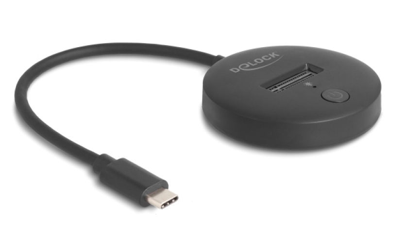 Αυτό το docking station της Delock επιτρέπει την σύνδεση ενός M.2 PCIe NVMe SSD ή M.2 SATA SSD σε ένα PC ή laptop μέσω θύρας USB-C.Είναι μικρο σε μέγεθος για να μεταφέρεται εύκολα και διαθέτει πλήκτρο ενεργοποίησης/απενεργοποίησης.