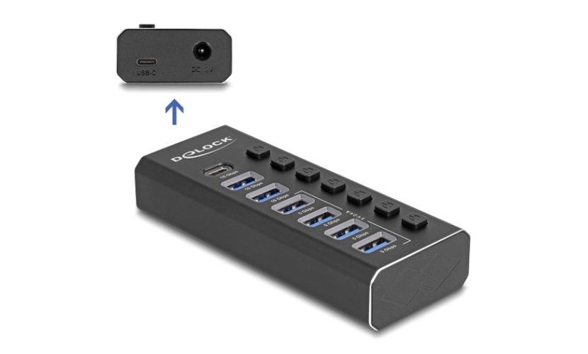 DELOCK USB hub 64326 με διακόπτες, 7x θυρών, 10Gbps, USB/USB-C σύνδεση, μαύρο