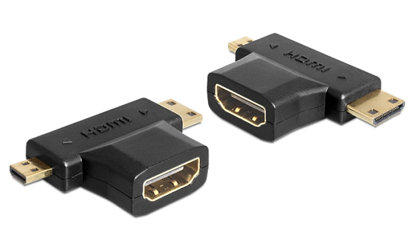 DELOCK αντάπτορας HDMI σε HDMI mini & micro 65446, gold plated, μαύρος