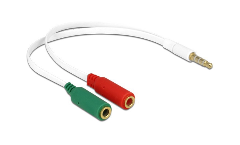 Τεχνικά Χαρακτηριστικά- Connector: 1 x stereo jack male 3.5 mm 4 pin > 2 x stereo jack female 3.5 mm 3 pin- Stereo jack female: red: microphone / green: audio- Pin assignment 4 pin stereo jack male with CTIA standard (top > sleeve) Audio left - Audio right - GND - AUX- Gold-plated connector- Colour: white- Cable length: ca. 20 cm (incl. connector)
