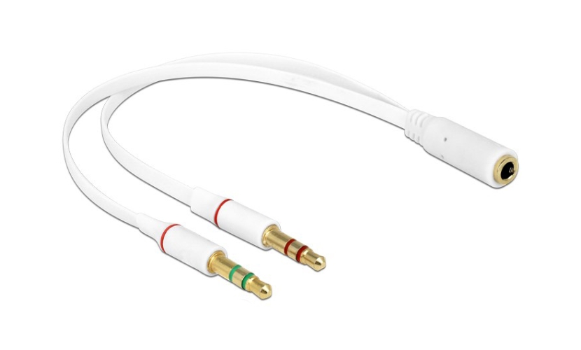 Τεχνικά Χαρακτηριστικά- Connector: 1 x stereo jack female 3.5 mm 4 pin > 2 x stereo jack male 3.5 mm 3 pin- Stereo jack male: red: microphone / green: audio- Pin assignment 4 pin stereo jack female with CTIA standard: Audio left - Audio right - GND - AUX- Colour: white- Cable length: ca. 20 cm (incl. connector)