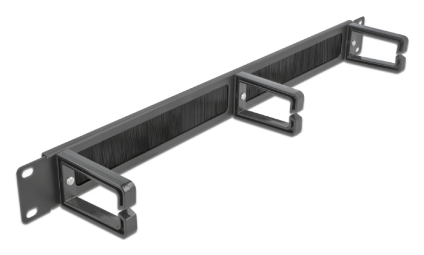 DELOCK cable management 66488, 19"/1U rack, 3x γάντζοι & βούρτσα, μαύρο