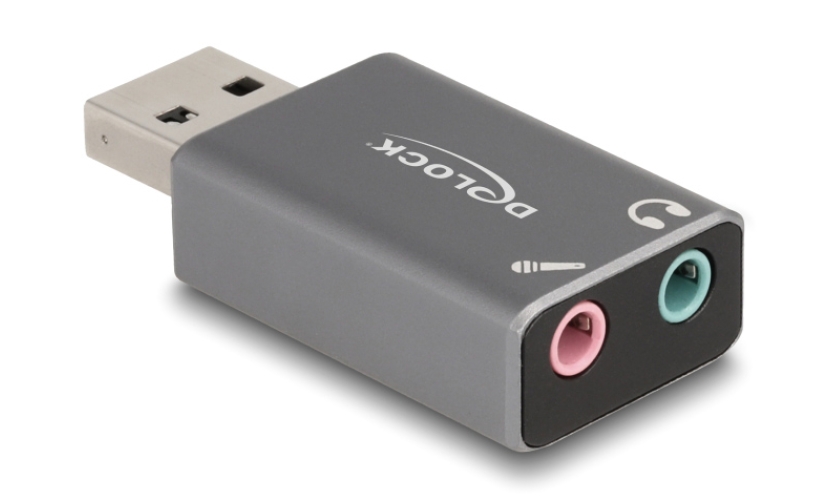DELOCK εξωτερική κάρτα ήχου 66633, 2x 3.5mm, USB σύνδεση, γκρι