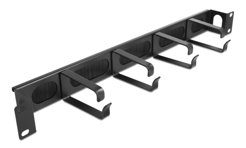 DELOCK cable management 67033, 19"/1U rack, 4x γάντζοι & βούρτσα, μαύρο