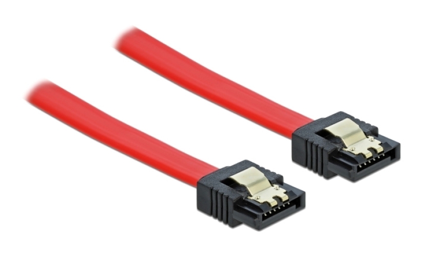 Αυτό το καλώδιο SATA από την Delock καθιστά δυνατή την εσωτερική σύνδεση διαφόρων συσκευών SATA, όπως δίσκους HDD, controller cards ή Flash μνήμες. Ο ρυθμός μεταφοράς δεδομένων που προσφέρει φτάνει έως 6 Gb/s. Τα μεταλλικά κλιπ στους συνδέσμους διασφαλίζουν ότι το καλώδιο ασφαλίζει σταθερά στη θέση του.