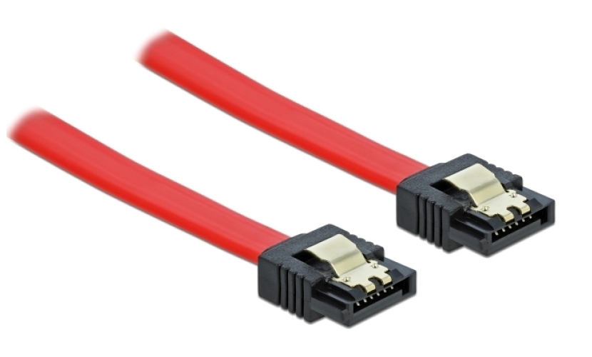Αυτό το καλώδιο SATA από την Delock καθιστά δυνατή την εσωτερική σύνδεση διαφόρων συσκευών SATA, όπως δίσκους HDD, controller cards ή Flash μνήμες.Ο ρυθμός μεταφοράς δεδομένων που προσφέρει φτάνει έως 6 Gb/s. Τα μεταλλικά κλιπ στους συνδέσμους διασφαλίζουν ότι το καλώδιο ασφαλίζει σταθερά στη θέση του.