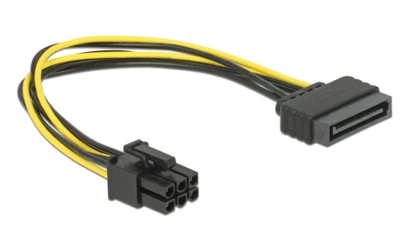 Καλώδιο τροφοδοσίας SATA 15-pin σε 6-pin PCI Express από την Delock. Μπορεί να χρησιμοποιηθεί για τροφοδοσία καρτών PCIe Express.