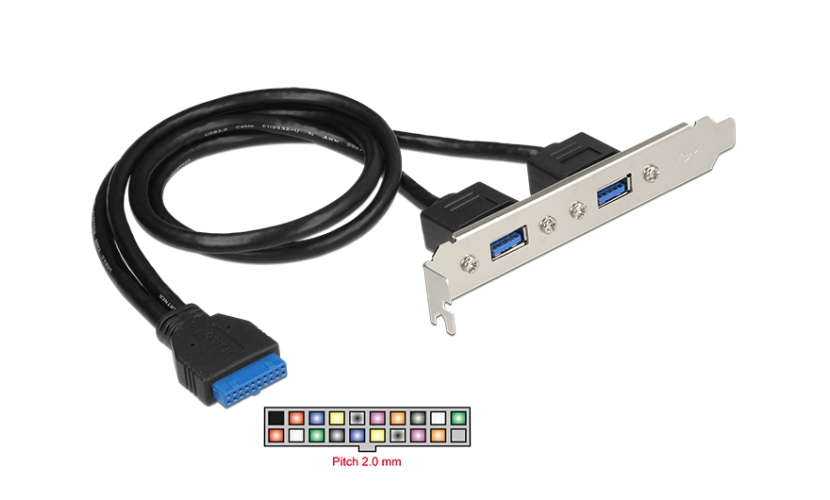 Τεχνικά Χαρακτηριστικά:Connector: internal: 1 x 19 pin USB 3.0 pin header female, external: 2 x USB 3.0 Type-A femalePitch distance: 2.00 mmScrew type: #4-40 UNCCable gauge: 28 AWG data line, 24 AWG power lineCable diameter: 5.5 mmData transfer rate up to 5 GbpsSlot bracket: standardCable colour: blackCable length without connector: 50 cm