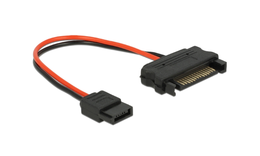 DescriptionThis cable by Delock enables the power supply of a device with a Slim SATA 6 pin power connector, such as a DVD drive, over a free SATA 15 pin power connector of the power supply.