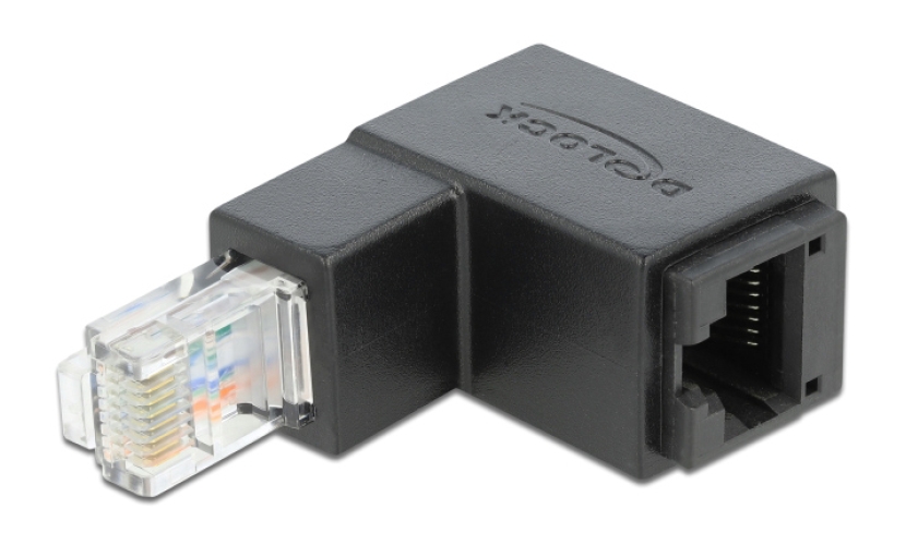 Με αυτό τον αντάπτορα της Delock, μια θηλυκή θύρα RJ45 μιας συσκευής μπορεί να αποκτήσει γωνία κατά 90°. Αυτό καθιστά δυνατή τη σύνδεση ενός καλωδίου δικτύου σε δυσπρόσιτα σημεία.