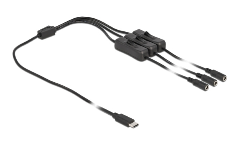 DELOCK καλώδιο USB Type-C σε 3x DC 5.5 x 2.1mm 86801, 1m, μαύρο