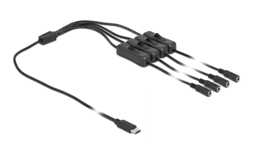 DELOCK καλώδιο USB Type-C σε 4x DC 5.5 x 2.1mm 86802, 1m, μαύρο