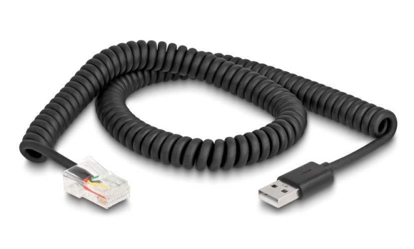 DELOCK καλώδιο USB σε RJ50 90602 για barcode scanner, spiral, 2m, μαύρο