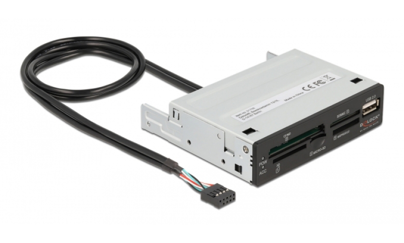 DELOCK USB 9-pin card reader 91708, CF/SD/XD/MS/Micro SD/USB, 3.5" bay