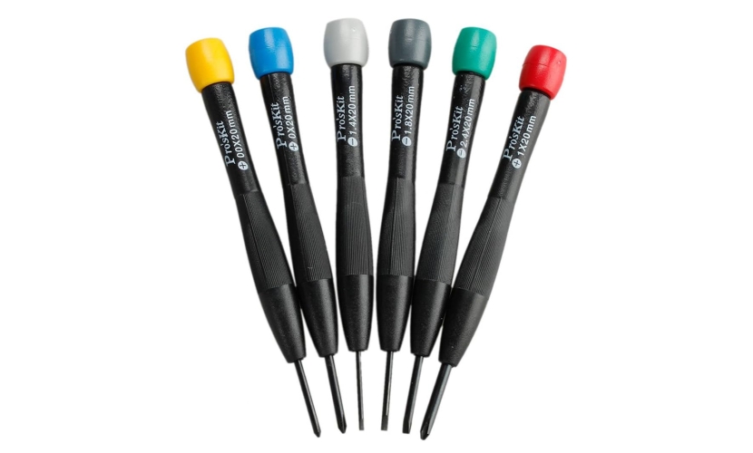 Σετ κατσαβιδιών της PROSKIT το οποίο αποτελείται από 6 κατσαβίδια ακριβείας. Είναι τοποθετημένα μέσα σε πλαστική θήκη, για την εύκολη τακτοποίηση και μεταφορά τους.