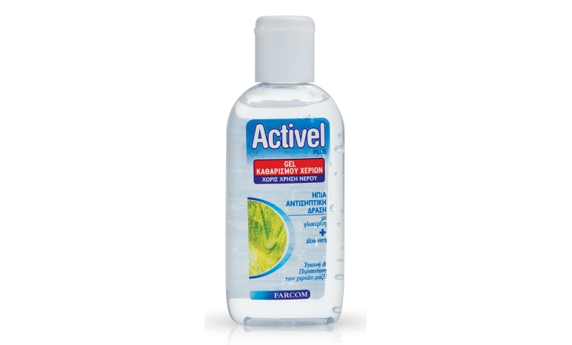 ACTIVEL gel καθαρισμού χεριών, με ήπια αντισηπτική δράση χωρίς την χρήση νερού. Περιέχει 70% αιθυλική αλκοόλη, γλυκερίνη & Aloe Vera, προσφέροντας προστασία και περιποίηση των χεριών μαζί.