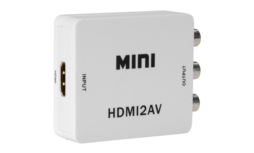 Ο Mini HDMI2AV μετατροπέας, μετατρέπει το HDMI σήμα βίντεο ή το σήμα ήχου στο σύνθετο σήμα βίντεο AV (CVBS) και τα στερεοφωνικά σήματα ήχου FL / FR, ενώ υποστηρίζει σήματα δευτερεύοντος συστήματος DVI. Σας βοηθάει να αλλάξετε την υψηλή ποιότητα του σήματος HDMI σε κανονικο σήμα CVBS (τυπική ευκρίνεια 480i, 576i), ώστε να μπορούν να αναπαραχθούν σε τηλεόραση, VHS VCR, DVD recorders κλπ. Επίσης υποστηρίζουν NTSC και PAL δύο τηλεοπτικά κανάλια.