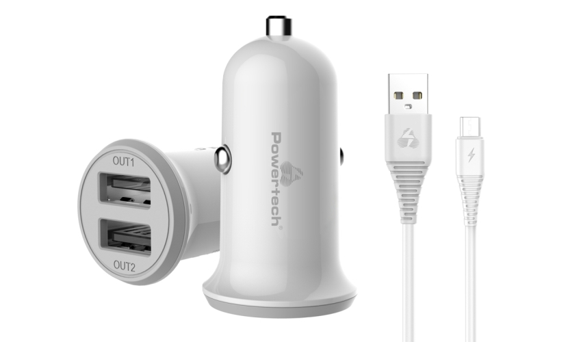 Φορτιστής αυτοκινήτου της Powertech, συμβατός με συσκευές που φορτίζουν μέσω θύρας USB.Διαθέτει 2x USB θύρες εξόδου, για την φόρτιση των συσκευών σας με μέγιστη συνολική απόδοση 3.4A.Στη συσκευασία συμπεριλαμβάνεται καλώδιο φόρτισης USB σε micro USB με μήκος 1 μέτρο.Οι USB φορτιστές Powertech κατασκευάζονται σύμφωνα με τα πλέον υψηλά ποιοτικά standard, με βελτιστοποιημένη απόδοση και εξαιρετική αξιοπιστία, διασφαλίζοντας την απρόσκοπτη και σταθερή λειτουργία τους. Διατίθονται σε ποικιλία μοντέλων, με υποστήριξη στις πλέον σύγχρονες λειτουργίες.
