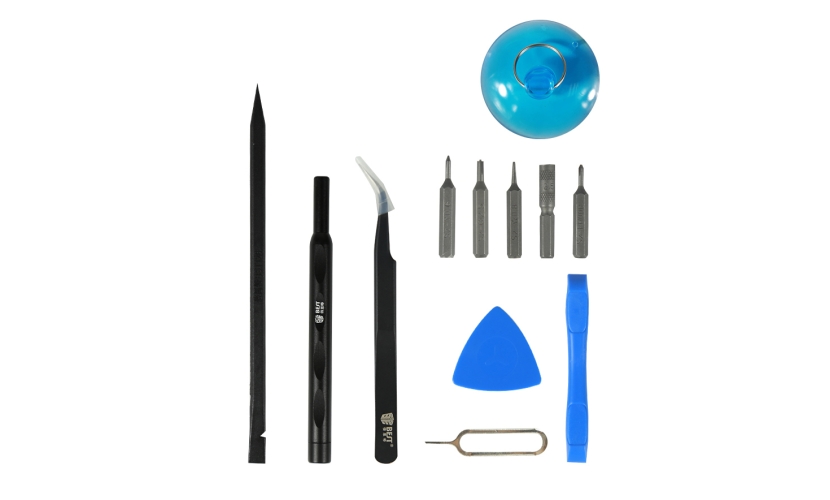 To σετ περιλαμβάνει:1x ESD spudger 1x Screwdriver handle1x ESD Curved tweezers1x Triangle plastic pry pick1x Plastic crowbar1x Sim ejector1x Suction cup5x Bits