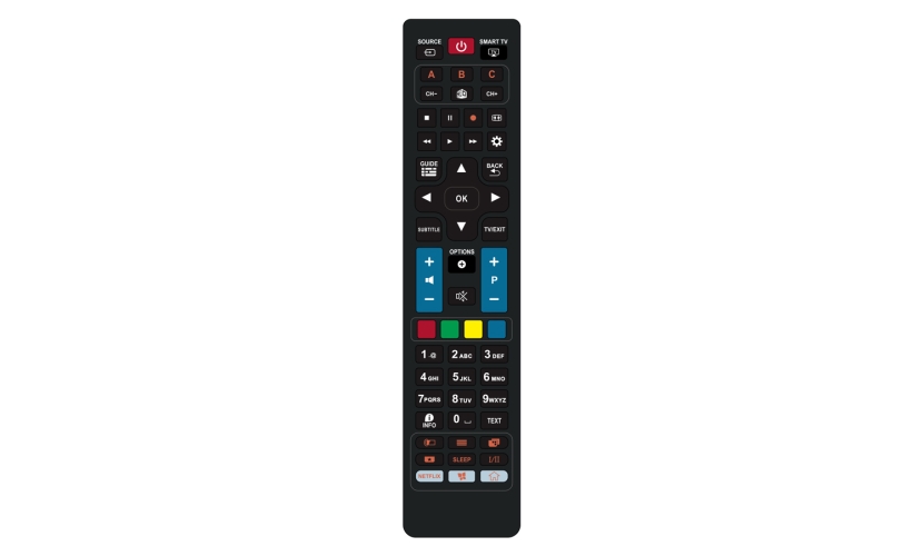 Εργονομικό χειριστήριο τηλεόρασης το οποίο υποστηρίζει όλες τις λειτουργίες της τηλεόρασης, συμπεριλαμβανομένου και του teletext. Επιπρόσθετα, εξοπλίζεται με dedicated πλήκτρα για εφαρμογές των smart TVs.