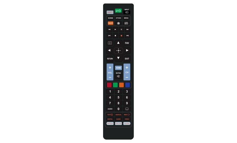 Εργονομικό χειριστήριο τηλεόρασης το οποίο υποστηρίζει όλες τις λειτουργίες της τηλεόρασης, συμπεριλαμβανομένου και του teletext. Επιπρόσθετα, εξοπλίζεται με dedicated πλήκτρα για εφαρμογές των smart TVs.