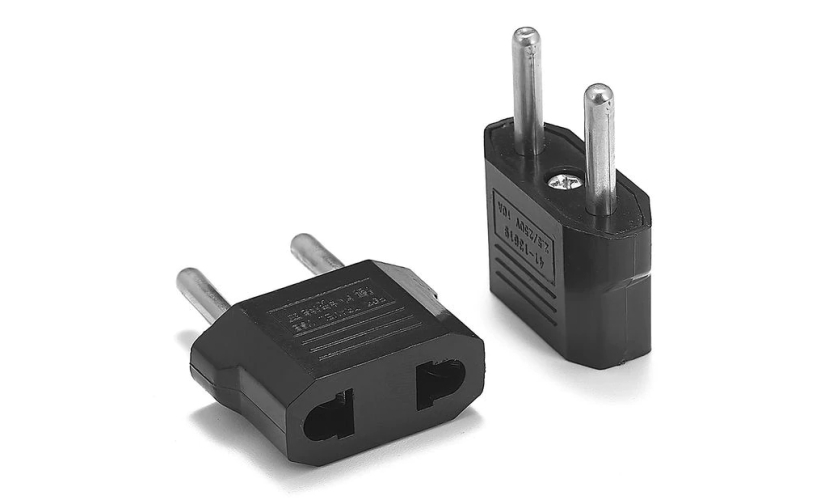 Αντάπτορας ρεύματος ο οποίος χρησιμοποιείται για σύνδεση συσκευών με China/USA πρίζα, σε γερμανικού τύπου.Η συσκευασία περιέχει 5 αντάπτορες, μαύρου χρώματος.