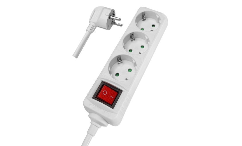 POWERTECH πολύπριζο PT-873, 3x schuko, 16A, 1.5m, λευκό