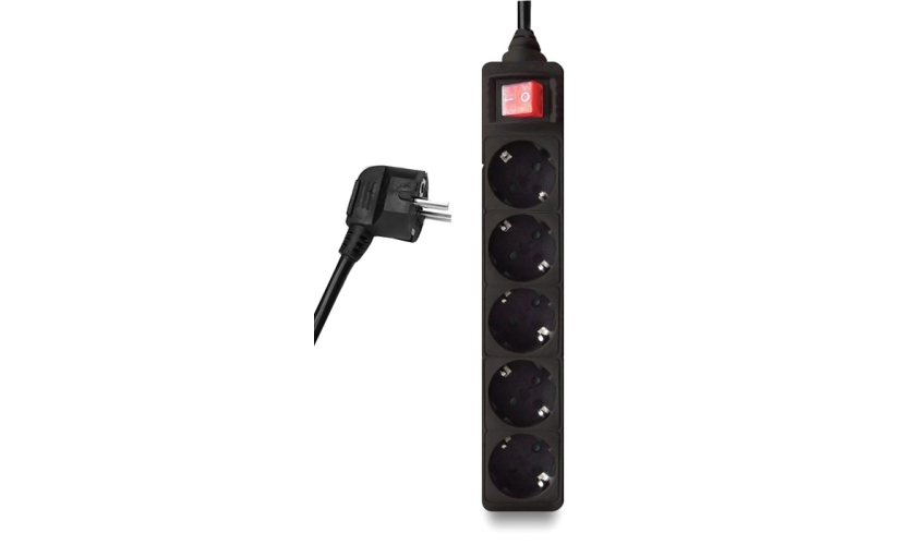 POWERTECH πολύπριζο PT-875, 5x schuko, 16A, 1.5m, μαύρο
