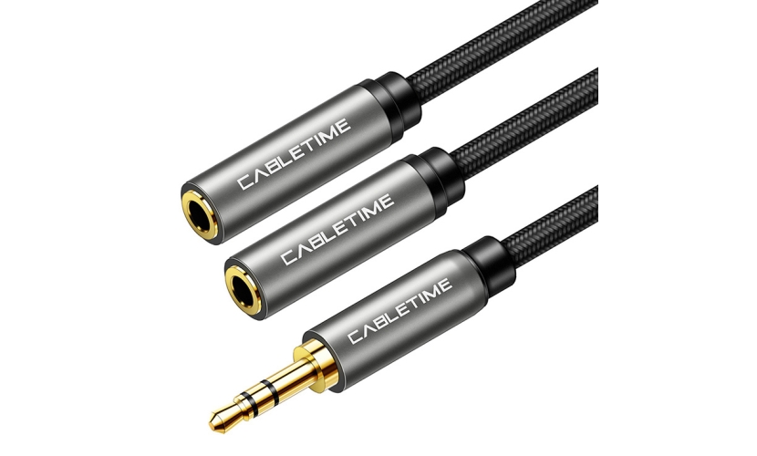 CABLETIME καλώδιο ήχου 3.5mm σε 2x 3.5mm CT-P12G, 3-pole, 20cm, μαύρο