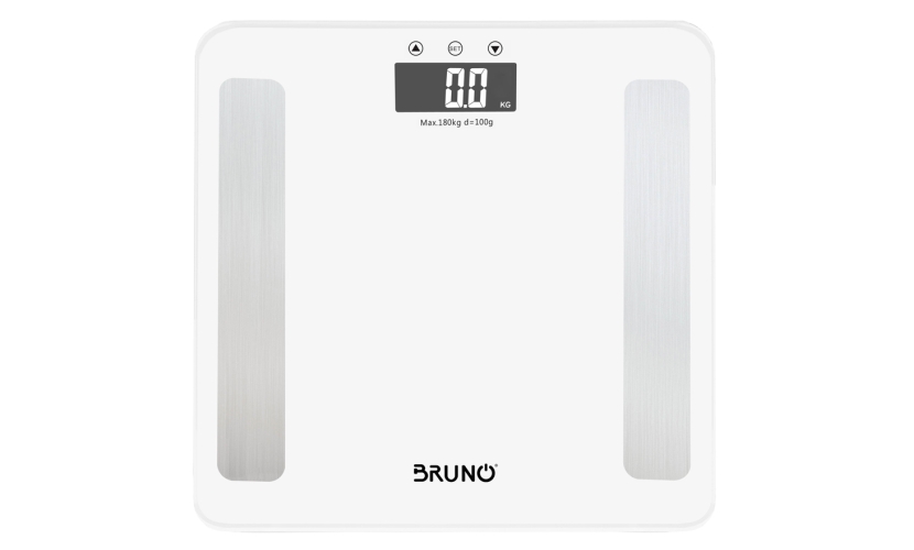 Ψηφιακή ζυγαριά της Bruno με επιφάνεια κατασκευασμένη από tempered glass και μεγάλη ευανάγνωστη οθόνη LCD. Μπορεί να υπολογίσει με εξαιρετική ακρίβεια το σωματικό βάρος, το λίπος, το νερό, την μυϊκή μάζα, την οστική μάζα, τις θερμίδες αλλά και τον Δείκτη Μάζας Σώματος (ΒΜΙ). Διαθέτει 3 μονάδες μέτρησης (kg, lb, st) με δυνατότητα μέτρησης έως 180kg και ευαισθησία 0.1kg για ακριβής μέτρηση του σωματικού βάρους.Οι ζυγαριές της Bruno κατασκευάζονται από ποιοτικά υλικά, με σύγχρονες μεθόδους και σύμφωνα με αυστηρά κριτήρια ποιοτικού ελέγχου, διασφαλίζοντας απρόσκοπτη, αξιόπιστη και μακροχρόνια λειτουργία.