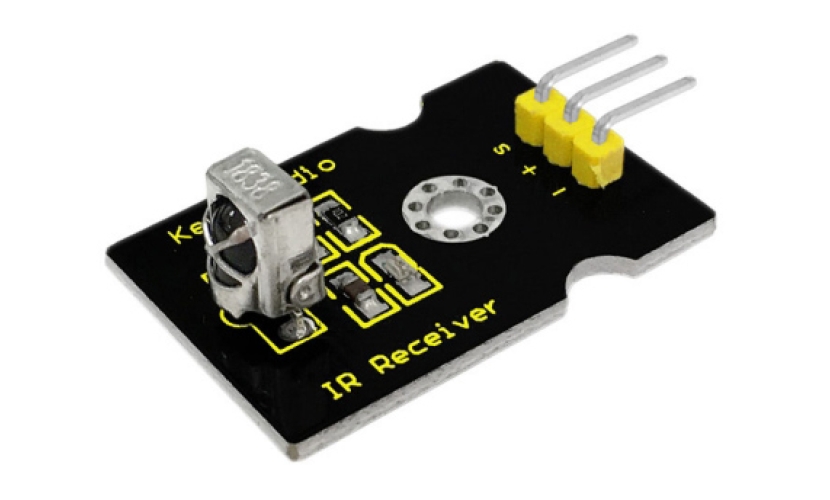 Digital IR receiver module της Keyestudio. Με αυτόν τον δέκτη IR, το Arduino είναι σε θέση να λαμβάνει εντολή από οποιοδήποτε IR τηλεχειριστήριο.