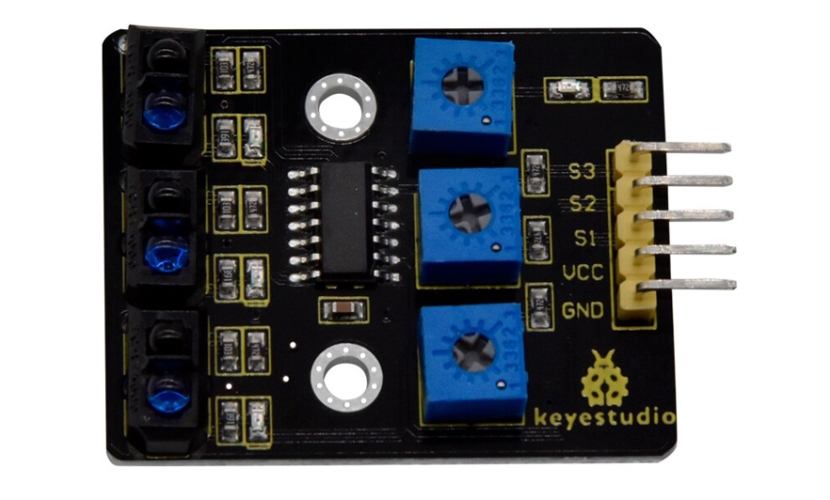 3-channel infrared line tracking sensor της Keyestudio. Μπορεί να κανει ένα Arduino DIY smart car να ακολουθεί μια γραμμή.