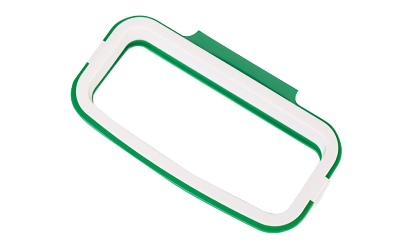 Βάση στήριξης για σακούλες απορριμμάτων, κατασκευασμένη από ανθεκτικό πλαστικό υλικό.Μπορεί να τοποθετηθεί εύκολα σε συρτάρια ή ντουλάπια της κουζίνας με πάχος έως και 2 cm.