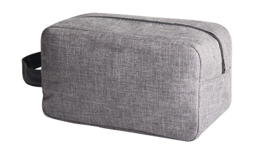 Κομψό και ιδιαίτερα πρακτικό τσαντάκι καλλυντικών, με χειρολαβή για την εύκολη μεταφορά του. Το εσωτερικό του είναι καλυμμένο με αδιάβροχο υλικό που συγκρατεί τα υγρά που τυγχόν μπορεί να χυθούν από διαρροές των καλλυντικών.Διατίθεται σε γκρι χρώμα και έχει διαστάσεις 24 x 10.5 x 13cm