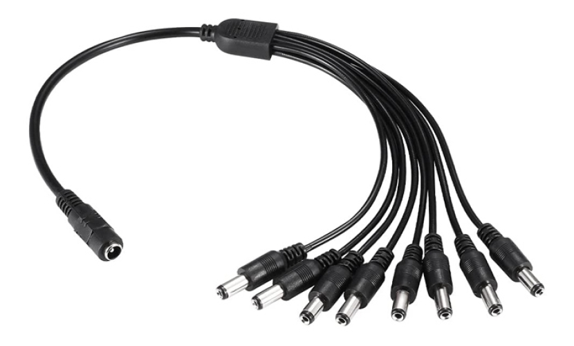 Καλώδιο splitter από 1 θηλυκό βύσμα ρεύματος σε 8 αρσενικά, 5.5x2.1mm.Το συνολικό μήκος του καλωδίου είναι περίπου 40cm.