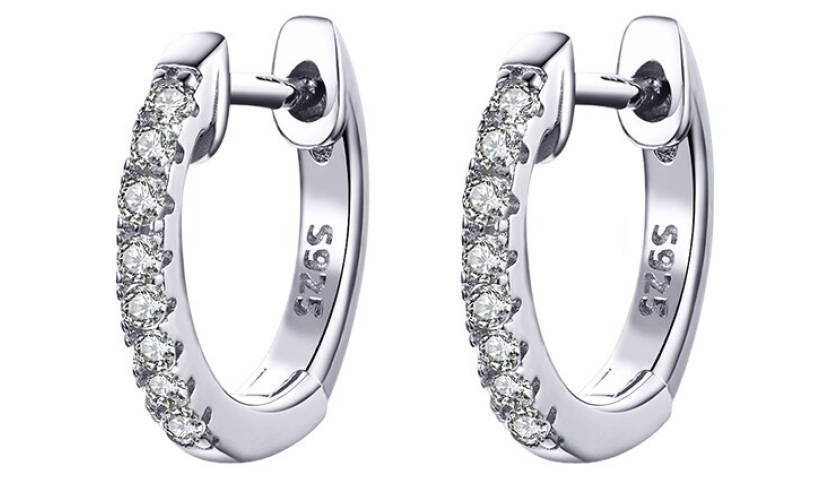 Σκουλαρίκια κρίκος Bamoer κατασκευασμένα από ασήμι 925, διακοσμημένα με αστραφτερή κυβική ζιρκόνια, λευκού χρώματος.Είναι ένα κόσμημα υψηλής αισθητικής που συνδυάζεται υπέροχα με όλες τις καθημερινές σας εμφανίσεις.