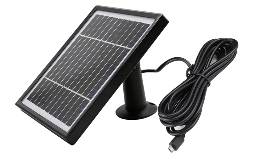 Ηλιακό πάνελ ισχύς 3,3W της Innotronic με βάση τοποθέτησης και καλώδιο Micro USB για την φόρτιση συσκευών όπως κάμερες που λειτουργούν με επαναφορτιζόμενες μπαταρίες.