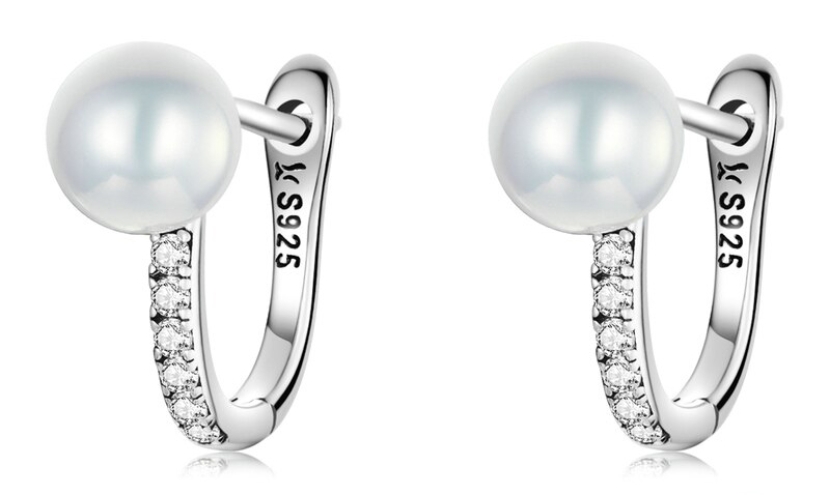 Κομψα σκουλαρίκια κρίκος Bamoer κατασκευασμένα από ασήμι 925 με επιπλατίνωμα, διακοσμημένα με αστραφτερή κυβική ζιρκόνια και πέρλα λευκού χρώματος.Είναι ένα κόσμημα υψηλής αισθητικής που συνδυάζεται υπέροχα με όλες τις καθημερινές σας εμφανίσεις.