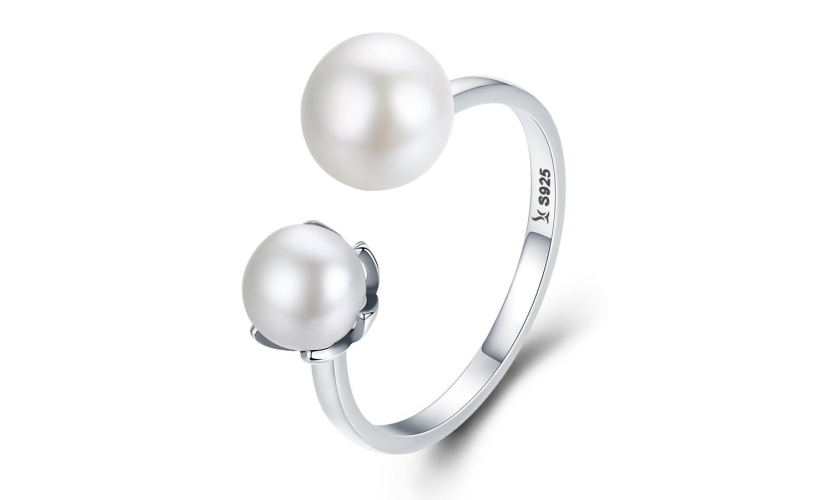 BAMOER δαχτυλίδι SCR192 με λευκές πέρλες, ανοιγόμενο, ασήμι 925, ασημί
