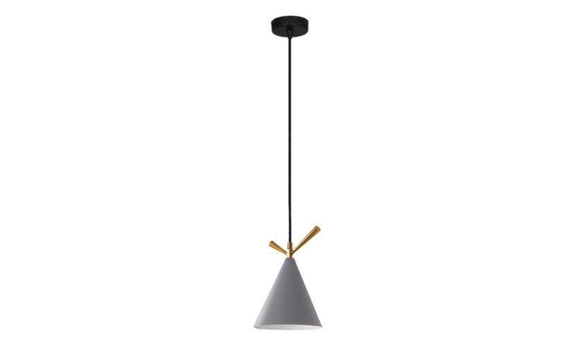 Κομψό, κρεμαστό φωτιστικό οροφής σε σχήμα κώνου με προσεγμένο φινίρισμα που θα προσφέρει στον χώρο σας έναν όμορφο τόνο. Το καλαίσθητο σχέδιο του προσδίδει συμβατότητα σε κάθε χώρο, ταιριάζοντας αρμονικά είτε σε μοντέρνο είτε σε πιο παραδοσιακό περιβάλλον. Το φωτιστικό είναι κατασκευασμένο από μέταλλο με χρυσή λεπτομέρεια που δίνει μια ιδιαίτερη νότα στο σύνολο.Διαθέτει ντουί τύπου E27 με μακρύ καλώδιο μήκους 1m και επιδέχεται λάμπες έως 40W.Για την τοποθέτηση του διαθέτει μια βάση η οποία συγκρατείται με 2 βίδες (συμπεριλαμβάνονται στην συσκευασία.) Η βάση είναι ξεχωριστή από το κυρίως φωτιστικό, με αποτέλεσμα η τοποθέτηση του να είναι ιδιαίτερα εύκολη και ακριβής.