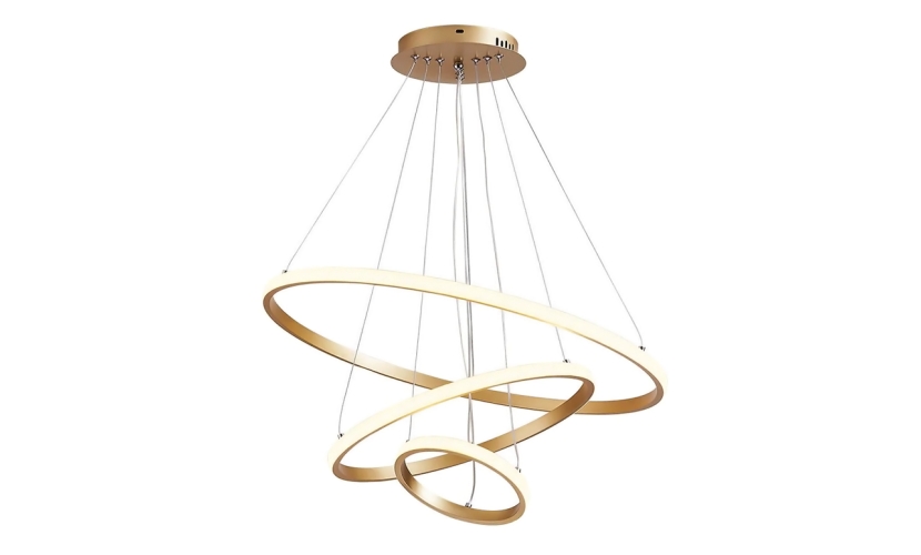 Μοντέρνο LED φωτιστικό οροφής αποτελούμενο από τρεις δακτυλίους με διάμετρο 20cm, 40cm και 60cm και ισχύ 44W.Το εντυπωσιακό σχέδιο του με το μεταλλικό σώμα, σε συνδυασμό με το χρυσό χρώμα του προσδίδει συμβατότητα σε κάθε χώρο ενώ η κατασκευή του διακρίνεται για την ποιότητα της και το λεπτεπίλεπτο φινίρισμα της.