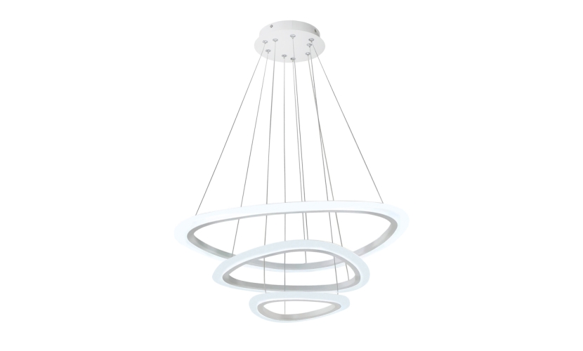 Μοντέρνο LED φωτιστικό οροφής αποτελούμενο από τρεις δακτυλίους σε διαφορετικά μεγέθη και ισχύ 44W.Το εντυπωσιακό σχέδιο του με το μεταλλικό σώμα, σε συνδυασμό με το λευκό χρώμα, προσφέρει εξαιρετικό φωτισμό ενώ η κατασκευή του διακρίνεται για την ποιότητα της και το λεπτεπίλεπτο φινίρισμα της.Τα 3 φωτιστικά σώματα με χρώμα φωτός 4000K θα φωτίσουν ξεκούραστα τον χώρο, ενώ διακρίνεται για την οικονομική του λειτουργία, χάρη στην εξοικονόμηση ενέργειας που προσφέρει η τεχνολογία LED.Η ποιοτική του κατασκευή εγγυάται την εκτεταμένη διάρκεια ζωής του φωτιστικού.