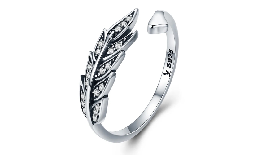 Κομψό δαχτυλίδι σε σχέδιο φτερού, διακοσμημένο με αστραφτερή κυβική ζιρκόνια, λευκού χρώματος, η οποία προσφέρει μοναδική λάμψη στο κόσμημα.Κατασκευάζεται από ασήμι 925 και το μέγεθος του είναι ρυθμιζόμενο ώστε να προσαρμόζεται ιδανικά σε κάθε δάχτυλο.Είναι ένα κόσμημα υψηλής αισθητικής που μπορεί να φορεθεί όλες τις ώρες της ημέρας και με κάθε στυλ ντυσίματος!