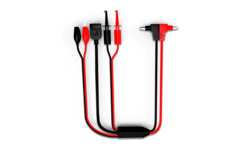 Σετ ακροδέκτες πολυμέτρου με γωνιακά φις μπανάνα, θύρα USB, γάντζους και clips με προστατευτικά καπάκια τύπου alligator. Διαθέτει εύκαμπτο καλώδιο σιλικόνης και είναι συμβατό με τα περισσότερα πολύμετρα της αγοράς.