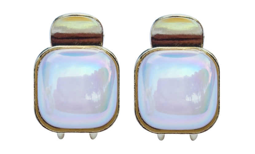 Μεταλλικό κλιπ μαλλιών σε χρυσό χρώμα, διακοσμημένο με τετράγωνη οπάλ πέτρα. Μπορεί να χρησιμοποιηθεί για την στερέωση των μαλλιών σας, αλλά και ως διακόσμηση στο χτένισμα σας.Η συσκευασία περιλαμβάνει 2 κλιπ μαλλιών.