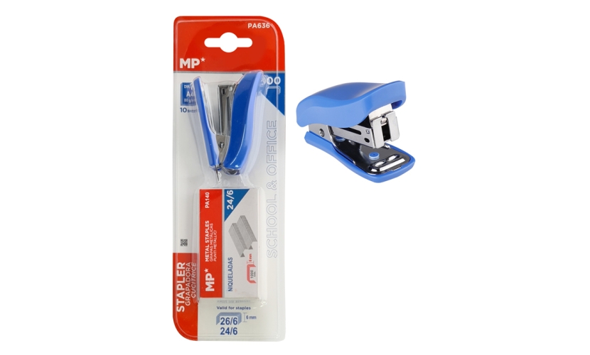 MP mini συρραπτικό με ανταλλακτικά PA636, 24/6-26/6, 10 φύλλα, μπλε
