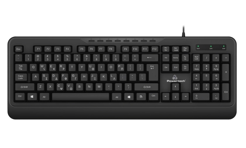 Ενσύρματο πληκτρολόγιο της Powertech με εργονομικά πλήκτρα για άνετη πληκτρολόγηση.Διαθέτει αγγλικούς και ελληνικούς χαρακτήρες στα πλήκτρα για γρήγορη πληκτρολόγηση στην επιθυμητή γλώσσα, αλλά και multimedia λειτουργίες με τη χρήση του πλήκτρου FN.Στη βάση του εξοπλίζεται με πτυσσόμενα ποδαράκια και αντιολισθητικά pads που προσφέρουν εξαιρετική σταθερότητα, αποτρέποντας την μετακίνηση του πληκτρολογίου κατά την χρήση.
