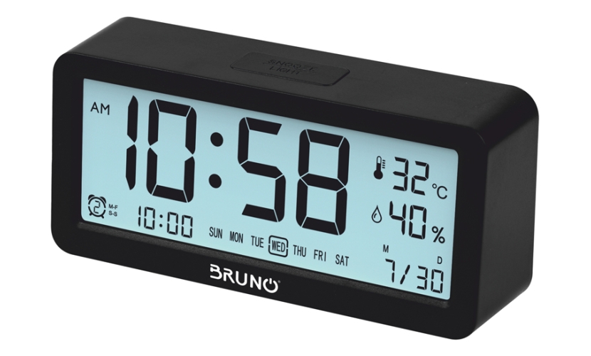 BRUNO ξυπνητήρι με μεγάλη ευανάγνωστη οθόνη και μέτρηση θερμοκρασίας και υγρασίας. Υποστηρίζει τριπλό ξυπνητήρι με το οποίο έχετε την δυνατότητα να ρυθμίσετε 3 διαφορετικές ώρες αφύπνισης και λειτουργία snooze. Διαθέτει οπίσθιο φωτισμό με το πάτημα ενός κουμπιού.Οι συσκευές της Bruno κατασκευάζονται από ποιοτικά υλικά, με σύγχρονες μεθόδους και σύμφωνα με αυστηρά κριτήρια ποιοτικού ελέγχου, διασφαλίζοντας απρόσκοπτη, αξιόπιστη και μακροχρόνια λειτουργία.
