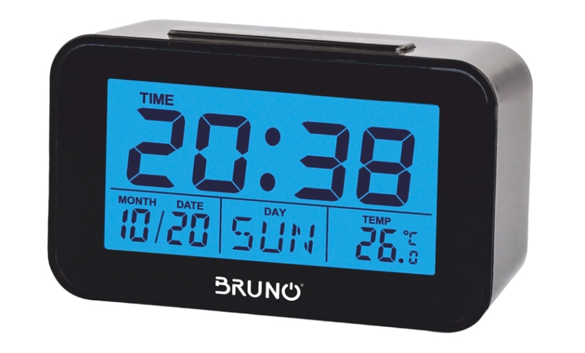 BRUNO ξυπνητήρι με μεγάλη ευανάγνωστη οθόνη και μέτρηση θερμοκρασίας. Υποστηρίζει λειτουργία αντίστροφης μέτρησης και λειτουργία snooze. Διαθέτει οπίσθιο φωτισμό με το πάτημα ενός κουμπιού.Οι συσκευές της Bruno κατασκευάζονται από ποιοτικά υλικά, με σύγχρονες μεθόδους και σύμφωνα με αυστηρά κριτήρια ποιοτικού ελέγχου, διασφαλίζοντας απρόσκοπτη, αξιόπιστη και μακροχρόνια λειτουργία.